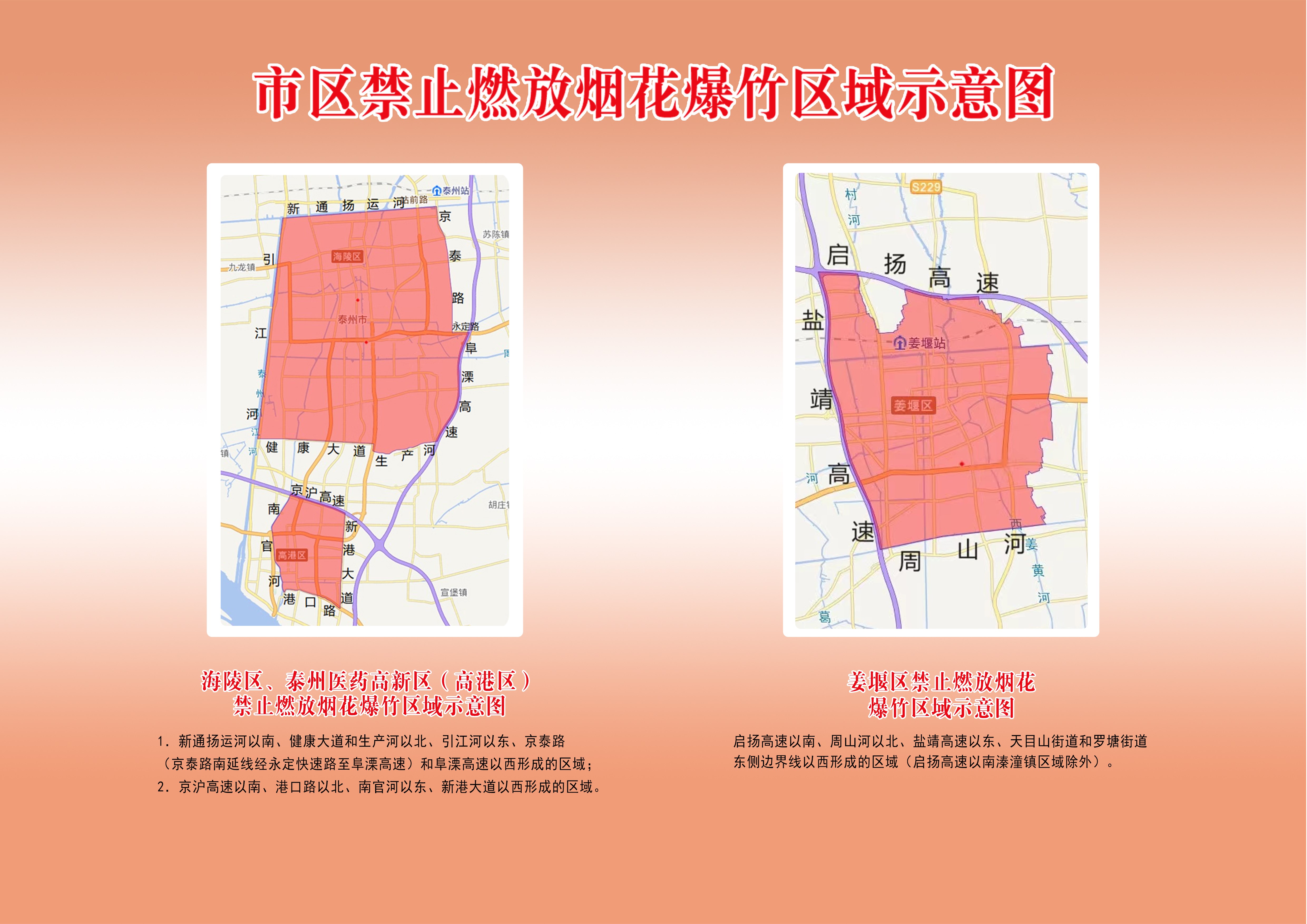 为加强烟花爆竹安全管理,保障公共安全和减少环境污染,根据国务院《烟花爆竹安全管理条例》和《泰州市市区烟花爆竹燃放管理条例》,结合市区实际,经市政府研究,决定调整市区禁止燃放烟花爆竹区域。现将调整后的禁放区域(见附件)通告如下: